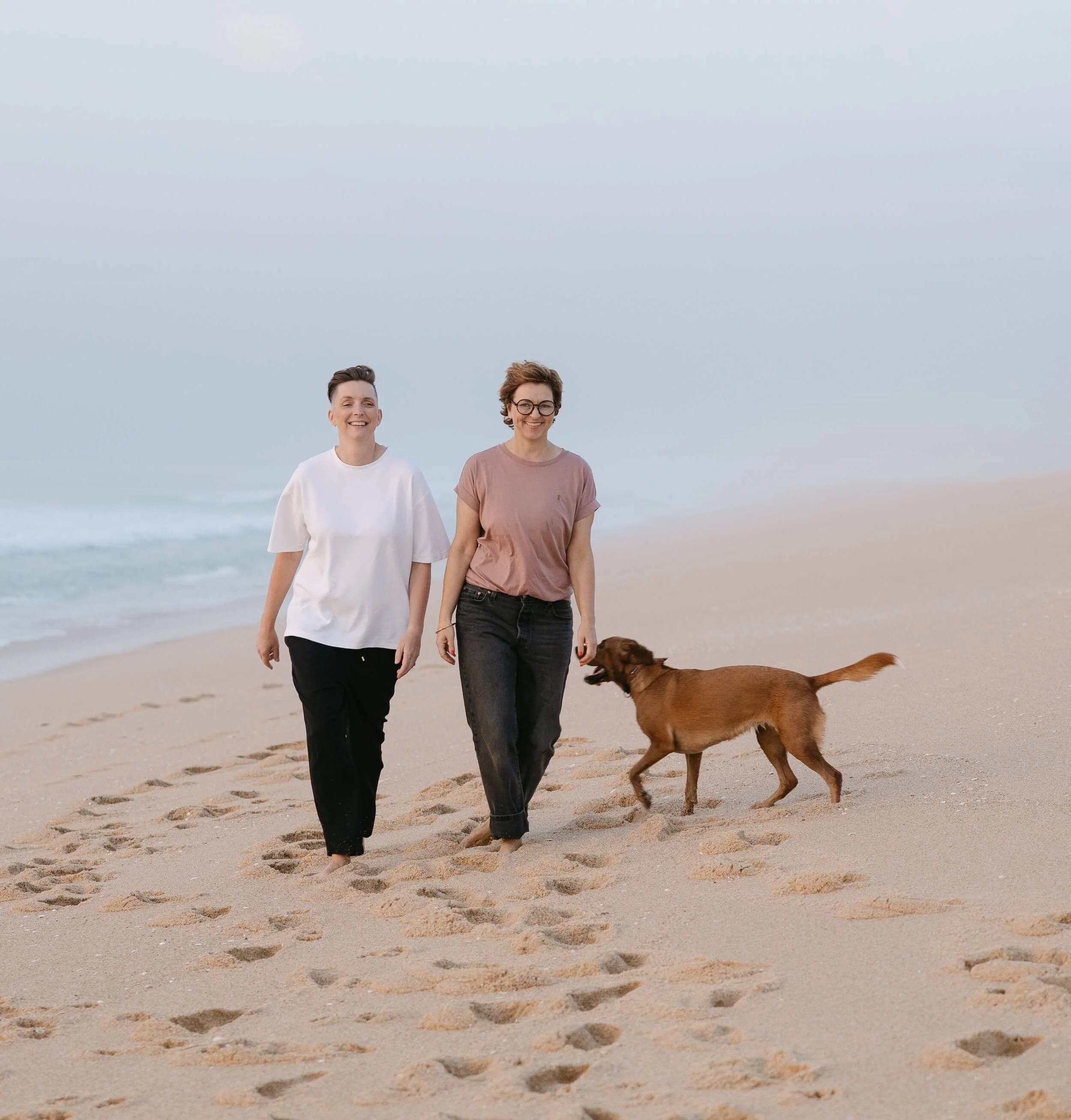 Conni Biesalski und Christine Schmid leben mit ihrer Hündin Toni – der besten Co-Regulatorin der Welt – in Portugal, Ericeira. Gemeinsam arbeiten sie on- und offline im deutschsprachigen Raum und international: Sie geben Interviews in Magazinen und Podcasts, leiten Workshops und Retreats und haben die Intesoma® Breathwork Ausbildung entwickelt.